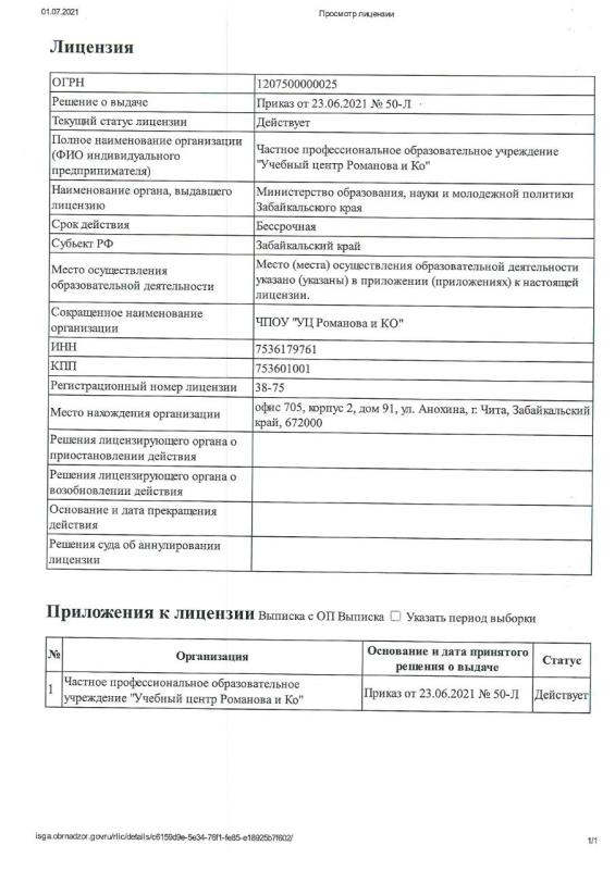 Лицензия о предоставлении обучающей программы